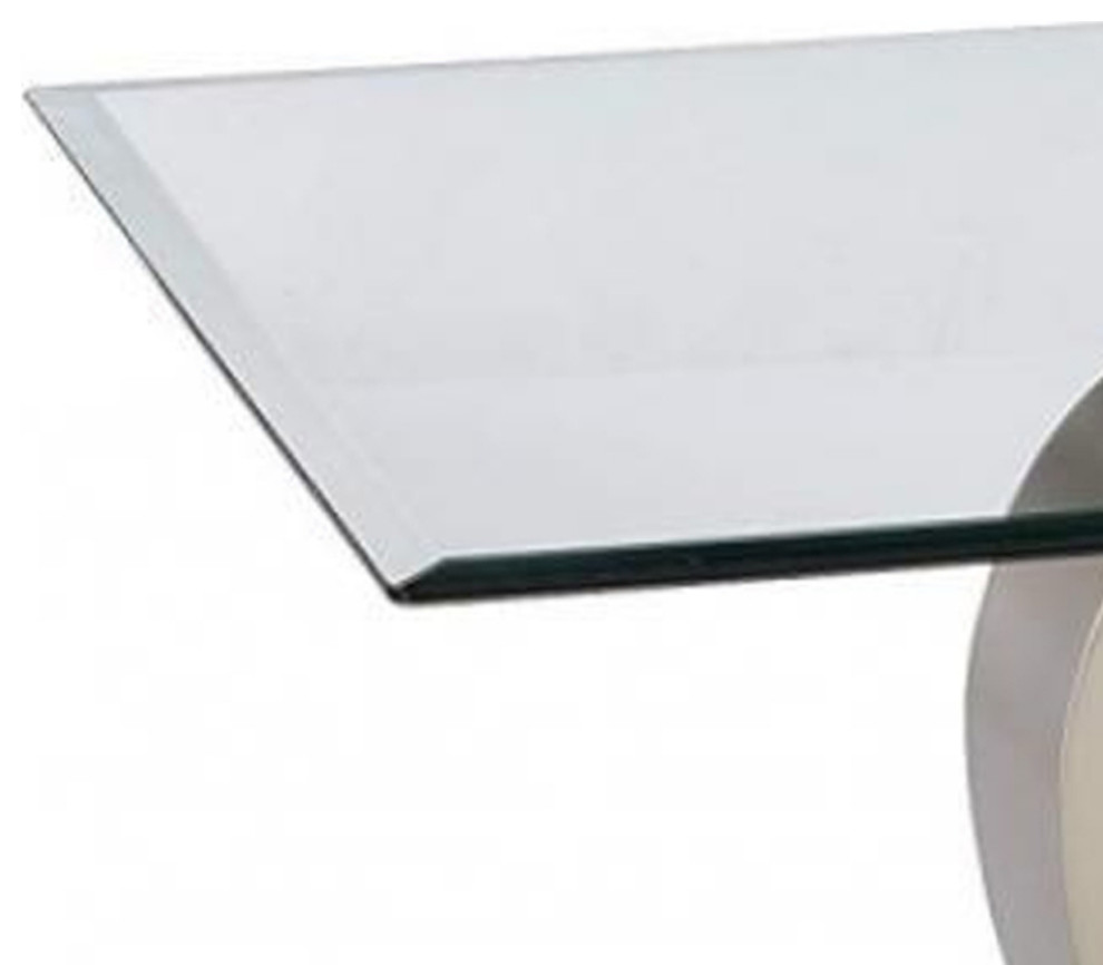 Enjoy a cup of coffee with your friends and family on this luxurious and charming coffee table. It has a stainless steel construction featuring a curved pedestal base mounted on a shiny rectangular base. The tabletop has 8mm beveled tempered glass in a rectangular shape.