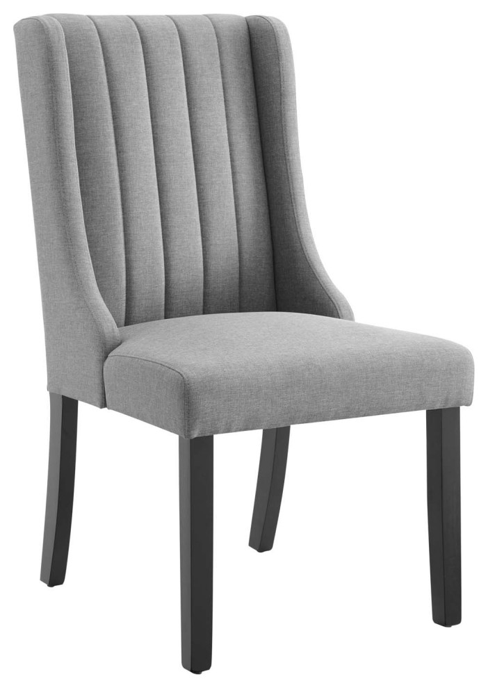 Revitalize your dining space with the Renew Fabric Dining Chairs. A set of two, these Parsons dining chairs bring glam deco style to your dining space with soft fabric upholstery and channel tufting. This fabric dining chair set features a sturdy rubberwood and MDF construction with dense foam padding and spring support system to offer a premium seating experience that encourages relaxation and conversation. Resting atop four black legs with plastic foot glides to prevent damage to flooring, these tufted accent chairs make a striking statement in the dining room, kitchen, living room, office, or other seating area.
