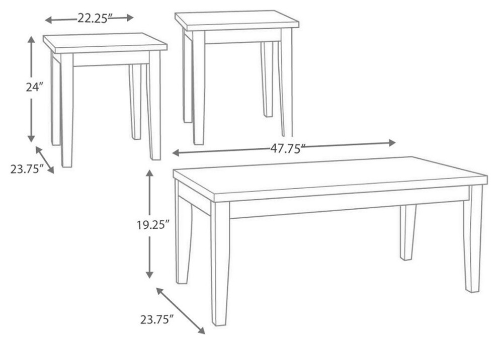 - Coffee Table: 47.75 inches in Length x 23.75 inches in Width x 19.13 inches in Height