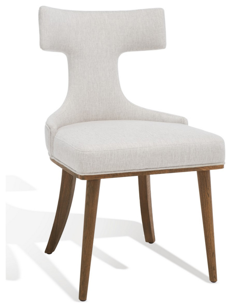 A 1970's throwback, this handmade Krisalyn Dining Chair is truly a sight to behold. Krisalyn's eye-catching silhouette undulates with visual intrigue in its curved cut-out sides and natural tapered legs, while soft taupe linen upholstery not only completes the look, but ensures every meal is endlessly cozy.
