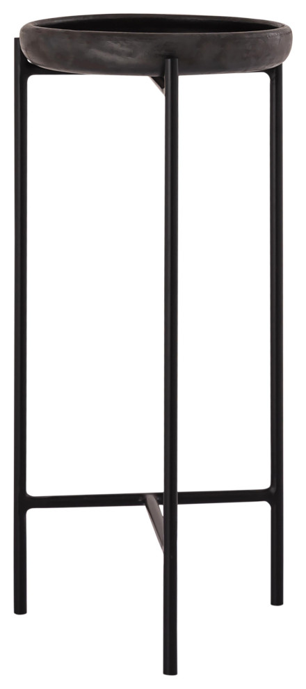 The Samara table features a bowl-like top on a tripod base. Its neutral black color and basic design ensures its invitation to any party setting and that it will fit anywhere from the family room to the buffet stand.