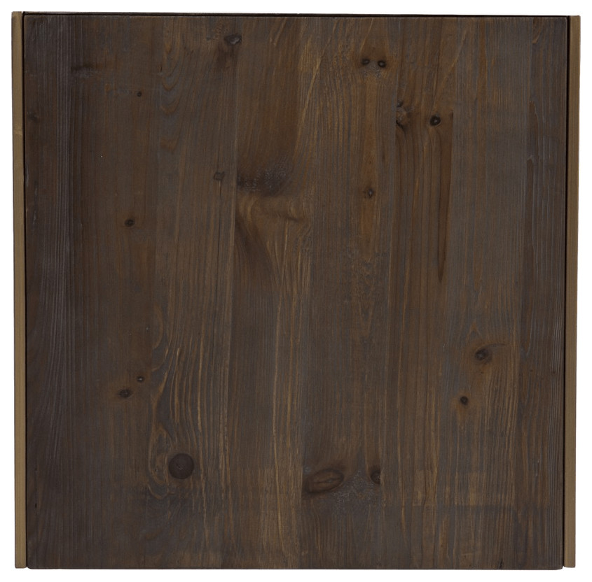 Show off your exquisite taste with this set of two 19" gray solid wood and gold chunky nested end tables. The nesting feature is a great space saver for when not in use. A rustic and distressed solid gray is finished off with brushed antiqued gold trim, giving this table set a chic and modern look. An ideal location for placing your snacks and drinks, and a place to keep your lamp, frames, or other accessories. This versatile table is a great accent for most any room. 19.25" H x 19" W x 19" D