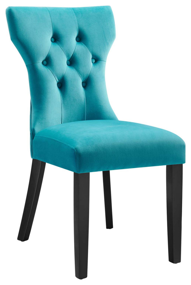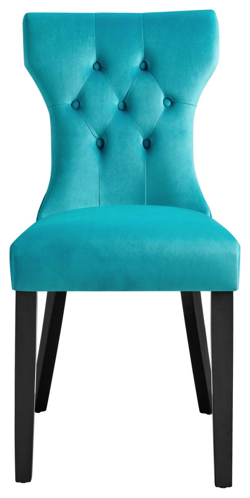 Graceful curves whisper elegance from every position on the Silhouette Dining Chairs - Set of 2. A softly tapered back and rounded hardwood legs lend distinguished support to this hourglass-shaped chair upholstered in stain-resistant performance velvet fabric. Dense foam padding and a sinuous spring support system grant a premium seating experience. Invite your way into the lap of luxury at every gathering.
