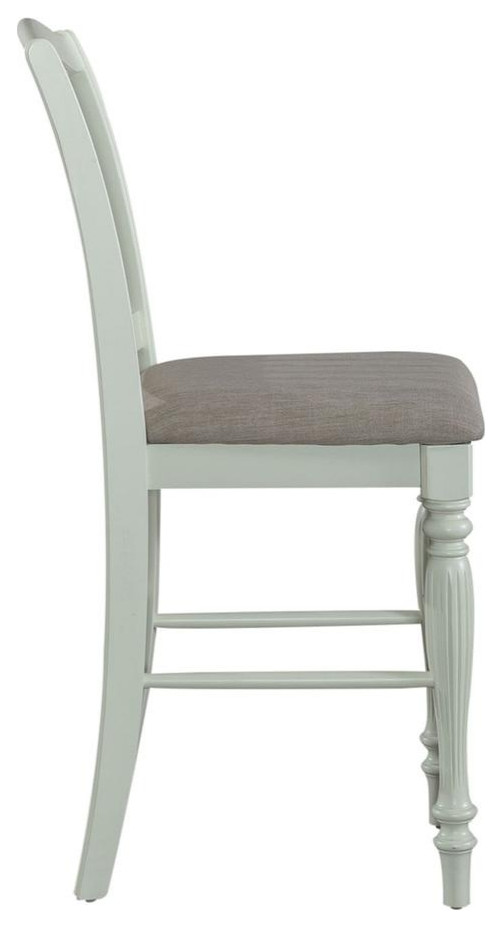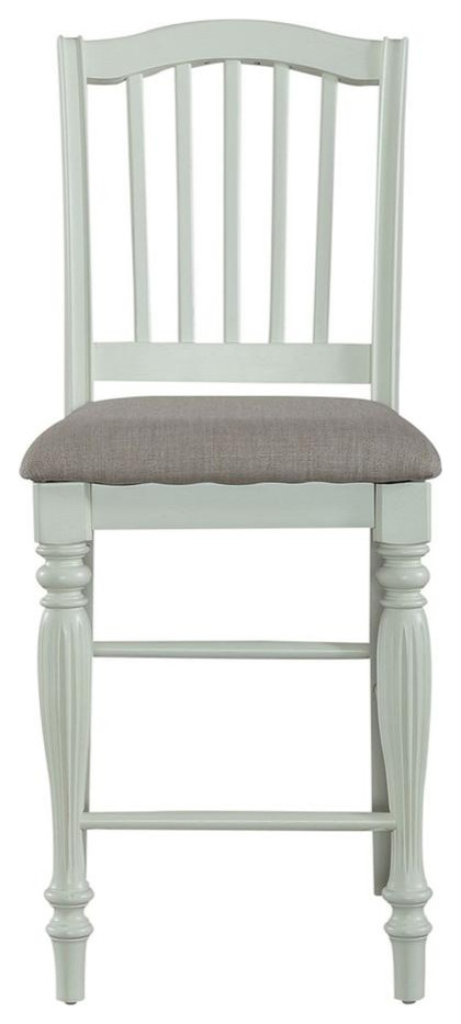 When details matter, choose the Cumberland Creek slat back counter chair. Crafted of rubberwood solids, this chair features a White finish and a padded upholstered seat in Gray Linen upholstery. The slat back with an arched cap rail pairs nicely with the turned fluted front legs that feature nylon chair glides to protect your flooring. Cumberland Creek offers a dressier feel to farmhouse living.