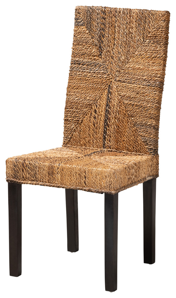 Uphold a tranquil atmosphere for every occasion with the serene design of the Tatiana dining chair. Made in Indonesia, this Boho piece consists of a solid mahogany wood frame wrapped in woven seagrass. Its tall backrest gently curves to ensure a cozy embrace, while the woven seagrass is geometrically arranged to form a crisp, eye-catching display. The Tatiana will arrive fully assembled and features tapered legs that complement its sleek silhouette while providing excellent stability and support. Adept at lending a carefree ambiance to every occasion, the Tatiana dining chair is sure to become a beloved part of any arrangement.