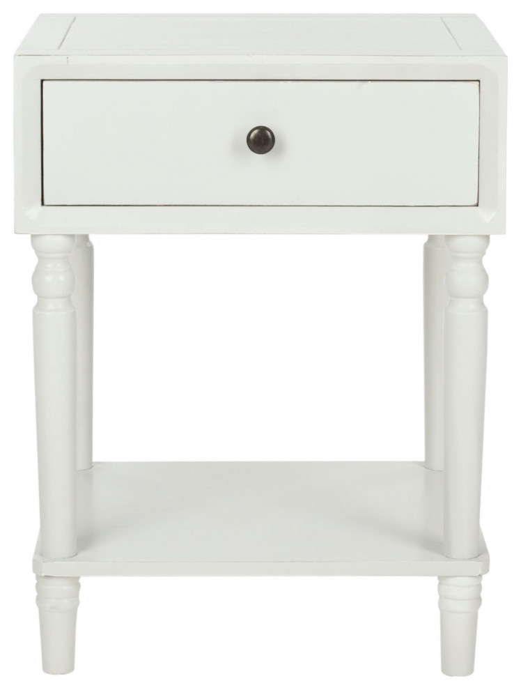 Crafted with 100% poplar wood in an off-white finish, the Thomas End Table brings just the right amount of storage and country style to the bedroom, living room, or home office. With its clean lines and refined, sculptured legs, Thomas highlights the best transitional design.