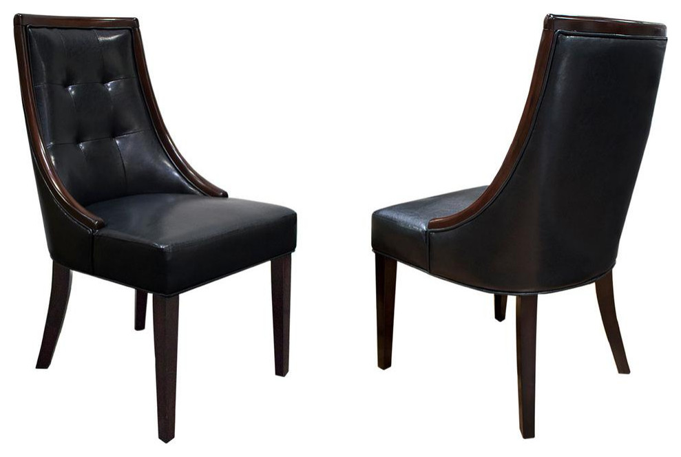 Create a traditional style in your living room with this Raphael dining side chairs. Made of manufactured wood with espresso wood trimming. These chairs are upholstered in faux leather with firm seating. The chair is curved with tufted look to give it a more detailed and special look. The straight traditional legs are designed for support and sturdiness.