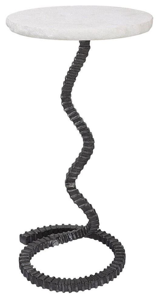 This Contemporary Drink Table Is The Perfect Accent For Your Favorite Book Or Cocktail. The Cast Iron Base Is Coiled Into Unique Curves With Notched Details In A Gunmetal Finish, Paired With A Chiseled Edge Man-made Stone Top In White That Accurately Replicates The Look Of Thassos Marble. Uttermost's Furniture Combines Premium Quality Materials With Unique High-style Design. With The Advanced Product Engineering And Packaging Reinforcement, Uttermost Maintains Some Of The Lowest Damage Rates In The Industry. Each Product Is Designed, Manufactured And Packaged With Shipping In Mind.