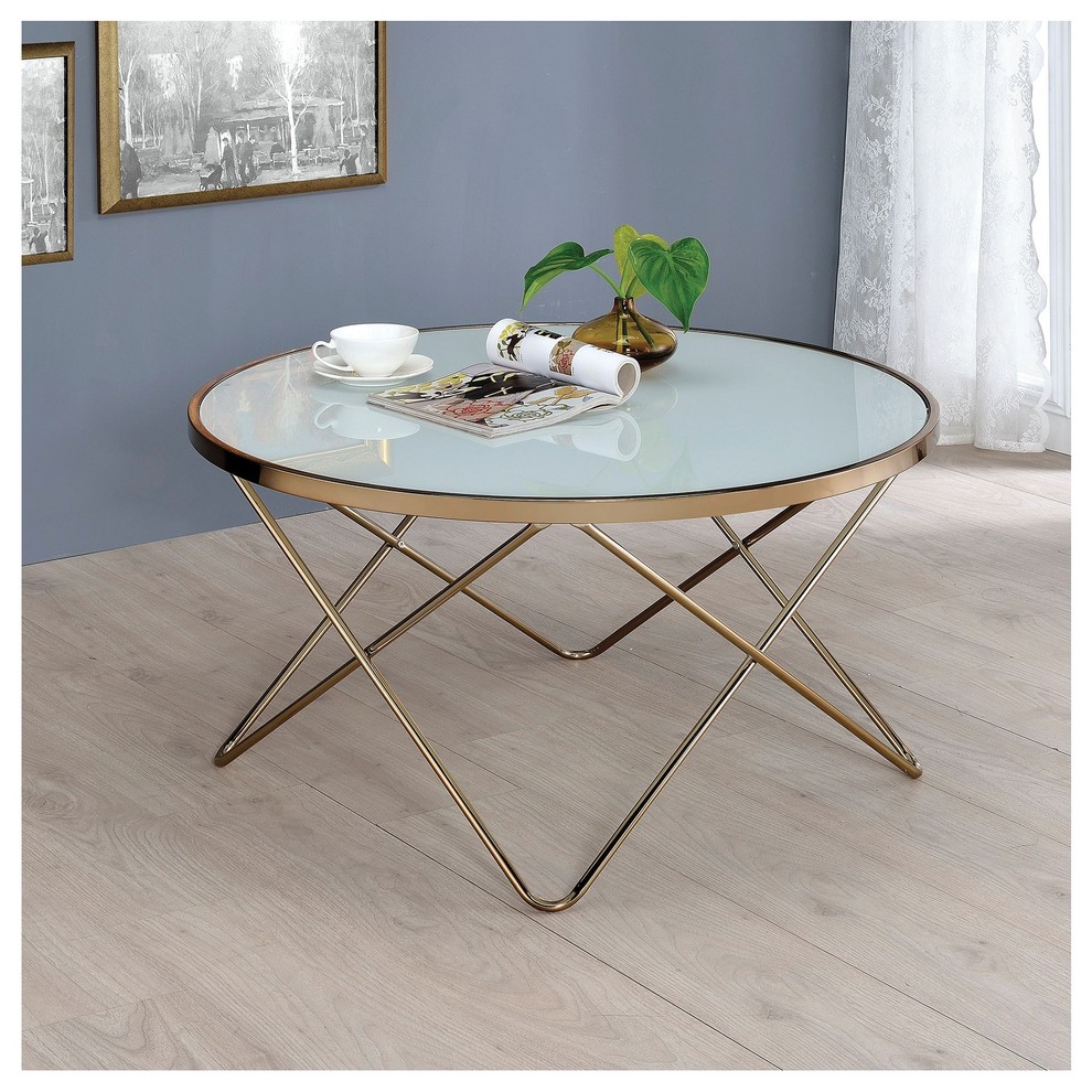 V Metal Frame Round Coffee Table White Frosted Glass Contemporary Coffee Tables by Urban Designs Casa Cortes Houzz