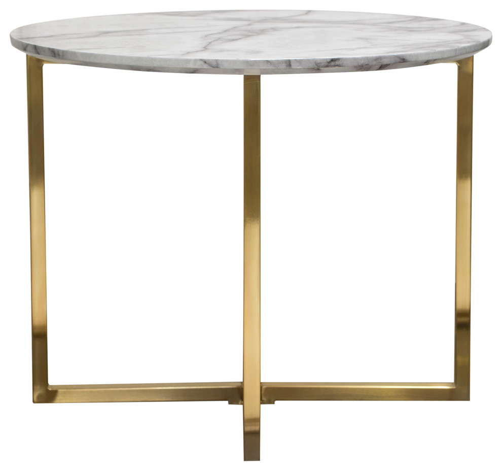 Vida 24 quotRound End Table With Faux Marble Top and Brushed Gold Metal Frame Contemporary Side Tables And End Tables by Timeout PRO Houzz