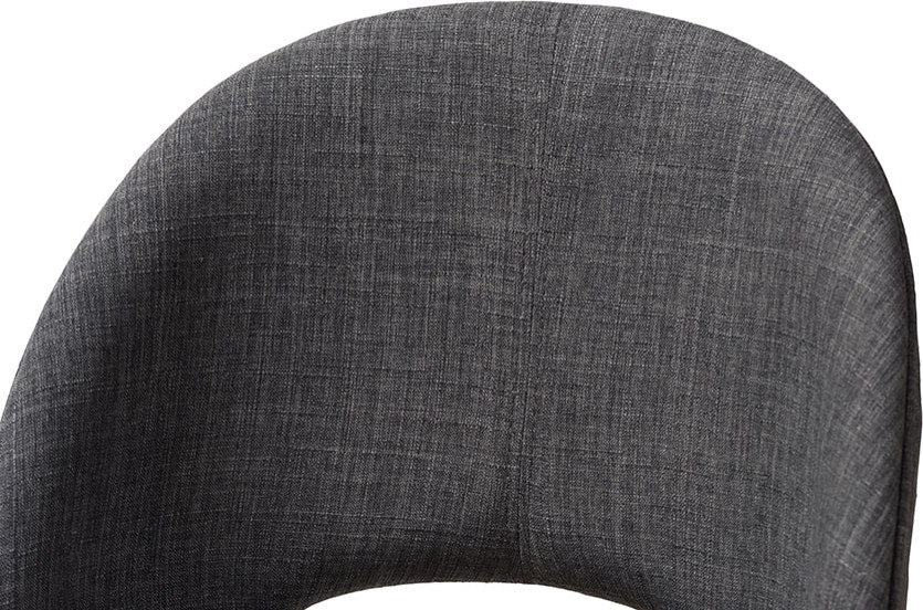 The Wesley dining chair is both fun and functional. The mid-century modern-inspired design of this chair evokes a retro charm. Constructed of solid, walnut-finished rubberwood, this dining chair is built to last. The Wesley is upholstered in dark grey fabric with a foam-padded seat. The chairback is delightfully bowed and open for comfort, with a smooth arched design. Add a fun and retro flair to your dining room, living room, or any other shared space with the Wesley. Made in Malaysia, this chair requires assembly.