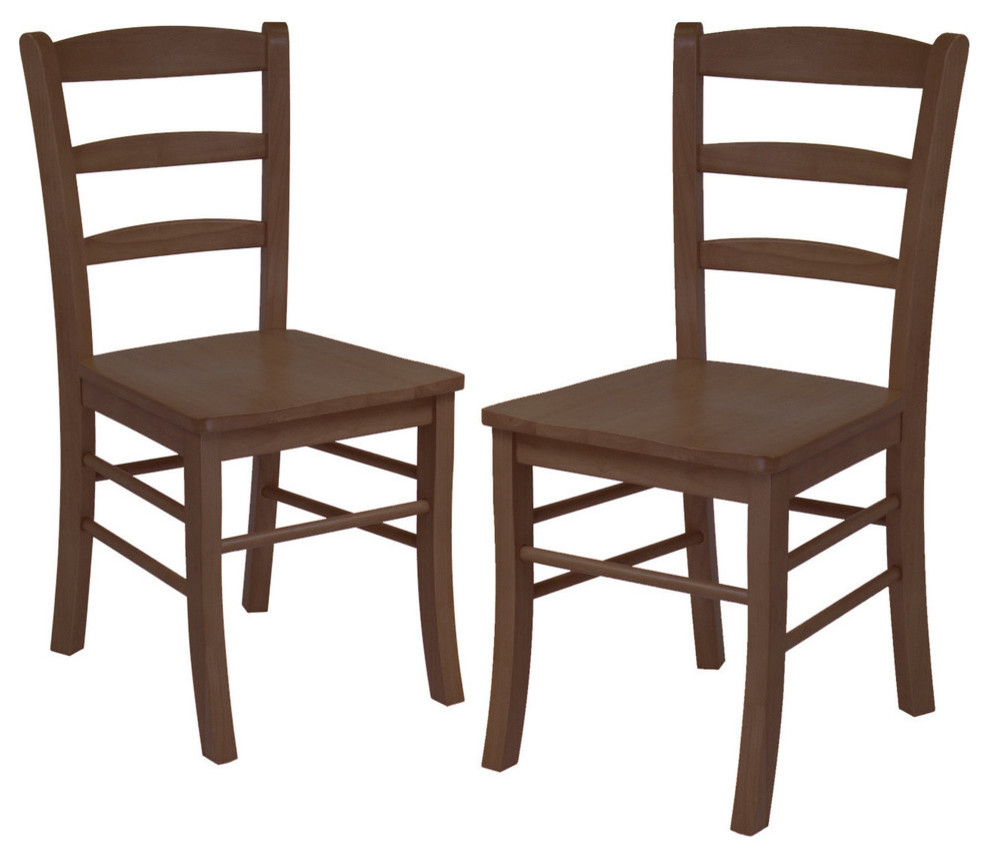 Instantly enhance the look of almost any room with these Winsome Wood Benjamin Ladder-back Chairs. These versatile pieces feature a classic style that can be incorporated effortlessly into nearly any existing decor. These comfortable chairs have a striking, ladder-back design that's ideal for any decor style, from rustic to modern. Featuring a sturdy, solid wood construction with a beautiful, walnut finish that adds instant warmth to any dining room and table. Offer a broad seat sitting at 17.97”H with a contouring seat back and wide set legs that lend tip free support. Their height is proportioned to match up with a standard size dining table. Use as a set or split and set one chair at your and the other as a hall chair. Complete your chair set with a dining table designed by Winsome Wood in the same finish for a more unified space (each sold separately). This set of two is conveniently packed and shipped in 1 box, that includes the hardware necessary for assembling. Replacement part request can be submitted directly to the manufacturer within 60 days from date of purchase.